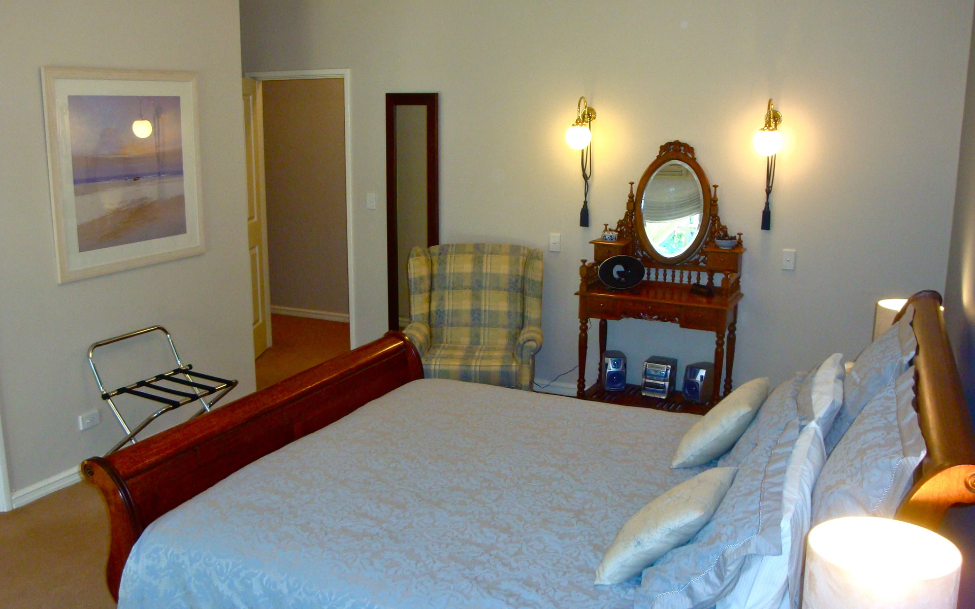 The room opens via French doors to a large private patio with outdoor seating overlooking the gardens. The room features tea/coffee making facilities, minibar fridge, microwave, LCD TV, USB charging points x2. Split-system air conditioning and an electric blanket are provided for your comfort.